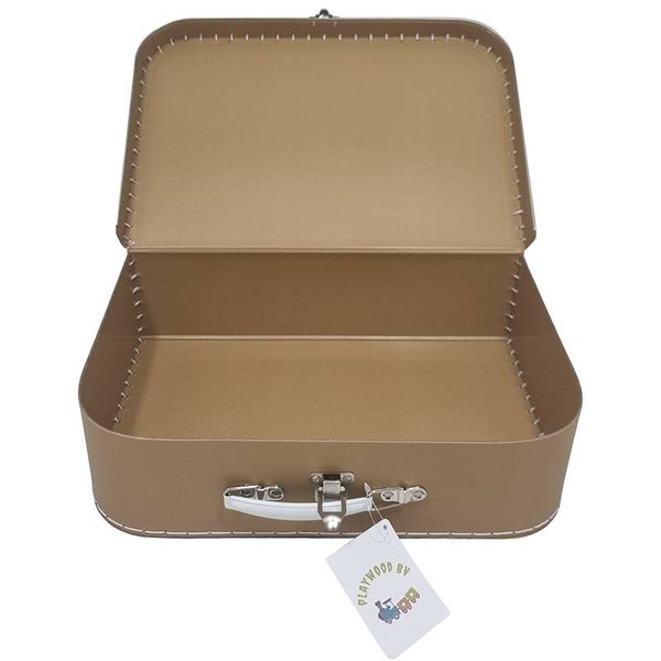 Dit kartonnen koffertje is L 30 CM x B 21,2 CM x H 9 CM en ook verkrijgbaar in het roze en wit.